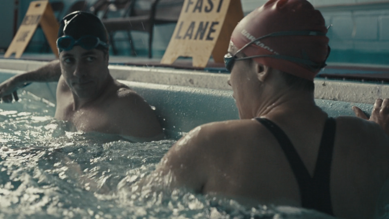 Early on the male gaze is also established, but in a subtle way. Brooks swims up to the male swimmer as he waits, tired at the edge of the pool. She acknowledges him, then pushes on, but we stay with him, Wells and editor Blaire McClendon preferring to hold on to see what he does. But he does nothing. He’s spent.